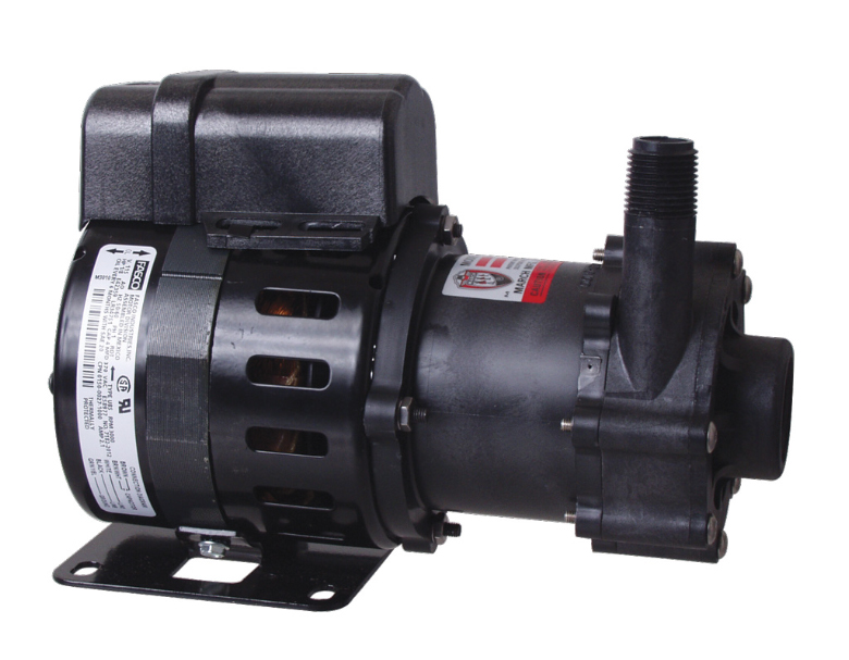 Designed for the small 'Nano' commercial brewery where the H315 series is too small but you don't yet need a full on expensive professional brewery pump. The March Nano Brewery Pump features a robust flow rate of 17 GPM with all the benefits brewers have come to expect from March magnetic drive pumps. Those features include the ability to throttle back flow and the use of food-grade materials where the beer is in contact with the pump.,,*Please Note* - This pump must be taken apart and cleaned after every use to prevent the impeller from seizing. To do so, take the bolts out of the pump head, remove the pump head from the pump, then take the impeller shaft and actual impeller apart. Clean well, and reassemble.,,Homebrewing Tips:,1. Great for Whirlpooling 20 gallons of wort or more.,2. Ideal for our Counterflow Chillers WC90.,,Please note that the pump comes with a three foot cord WITHOUT a plug attached. It has a 16 gauge 3 wire setup.,,Statistics,Motor: 1/8HP 110v/60Hz Max Flow: 17 G.P.M at zero head,Max Head: 27 ft. at 1 GPM,Inlet: 1" FPT,Outlet: 1/2" MPT,,,Materials in Contact with Beer,Polysulfone,Stainless Steel,Buna N,Ceramic